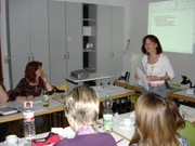 Die zweitägige Fortbildung baute auf der Lehrerfortbildung mit Dr. Esther Jansen O’Dwyer auf, die im Oktober 2009 in Weimar stattgefunden hatte. Auch im April 2010 konnten die Thüringer Berufsschullehrkräfte von Schweizer Know-how profitieren, diesmal präsentiert von Wilma Willi. Frau Willi, die mit zu den ersten Teilnehmenden im Projekt „bi.li – Zweisprachiger Unterricht an Berufsschulen“ im Kanton Zürich gehörte und ihren Unterricht an der Berufsschule Bülach bereits seit mehreren Jahren bilingual gestaltet,  gab viele ihrer praktischen Erfahrungen weiter. Die Veranstaltung ging ein auf Methoden, die guten bilingualen Unterricht kennzeichnen, Chancen und Möglichkeiten, mit dem bilingualen Unterricht die kommunikative Kompetenz der Auszubildenden zu erhöhen und fokussierte dann auf Hörverstehen im bilingualen Unterricht. Zugleich bot die Fortbildung das Podium für die Erarbeitung bilingualer Sequenzen für den eigenen Unterricht in fächerspezifischen Gruppen.