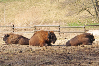 Das Foto gehört zur Serie "Tiere". Es zeigt einen Wisentbullen und zwei Kühe. Der Wisent oder Europäische Bison (Bos bonasus; häufig auch Bison bonasus) ist eine Art der Rinder in Europa. Es gelten die Nutzungsbedingungen der Mediothek und Pixiothek.
