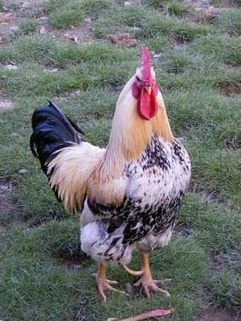 Das Foto gehört zur Serie "Bauernhof". Es zeigt einen stolzen Hahn auf der Wiese. Das Bild ist unter CC0 lizenziert und kann somit frei verwendet werden.