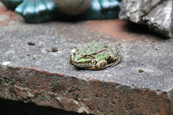Teichfrosch auf der Mauer