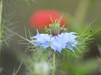Das Foto zeigt eine Blüte der Jungfer im Grünen (Nigella damascena). Diese einjährige Pflanze aus der Familie der Hahnenfußgewächse kommt aus dem Mittelmeerraum und ist eine in Mitteleuropa häufig kultivierte Gartenpflanze. Das Bild ist unter CC0 lizenziert und kann somit frei verwendet werden.