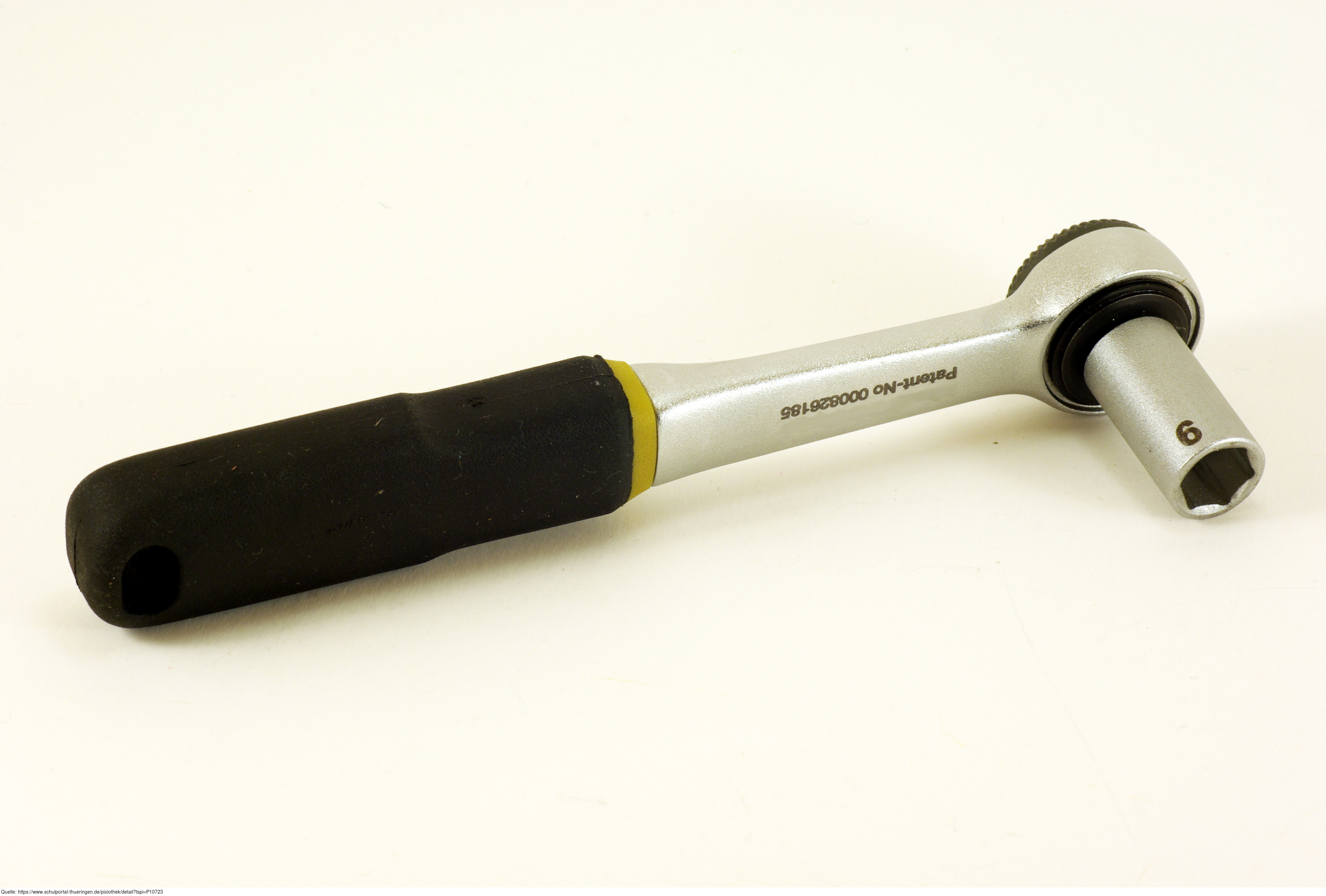 Das Bild gehört zur Serie "Werkzeuge". Es zeigt eine Ratsche oder Knarre. Ratschen betehen aus Handhebel, Ratschenmechanismus und Vierkant zum Aufstecken von Steckschlüsseln. Sie dienen zum Lösen oder Festziehen von Schraubverbindungen. Das Bild ist unter CC0 lizenziert und kann somit frei verwendet werden.