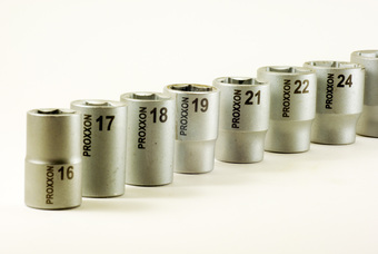 Das Bild gehört zur Serie "Werkzeuge". Es zeigt Steckschlüssel (Nüsse) für eine Ratsche (Knarre) zum Lösen oder Festziehen von Schraubverbindungen. Das Bild ist unter CC0 lizenziert und kann somit frei verwendet werden.