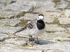 Das Foto gehört zur Serie "Stelzen und Pieper". Es zeigt eine Bachstelze (Motacilla alba). Sie fällt durch ihr kontrastreiches, schwarz-weiß-graues Gefieder und den stelzentypischen Wippschwanz auf. Es gelten die Nutzungsbedingungen der Mediothek und Pixiothek.