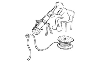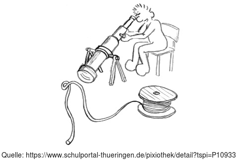 Das Bild gehört zur Serie "Paul". Es zeigt Paul beim Versuch, mit einem Fernrohr (Teleskop) einen viel zu nahen Gegenstand zu untersuchen. Das Bild ist unter CC0 lizenziert und kann somit frei verwendet werden.