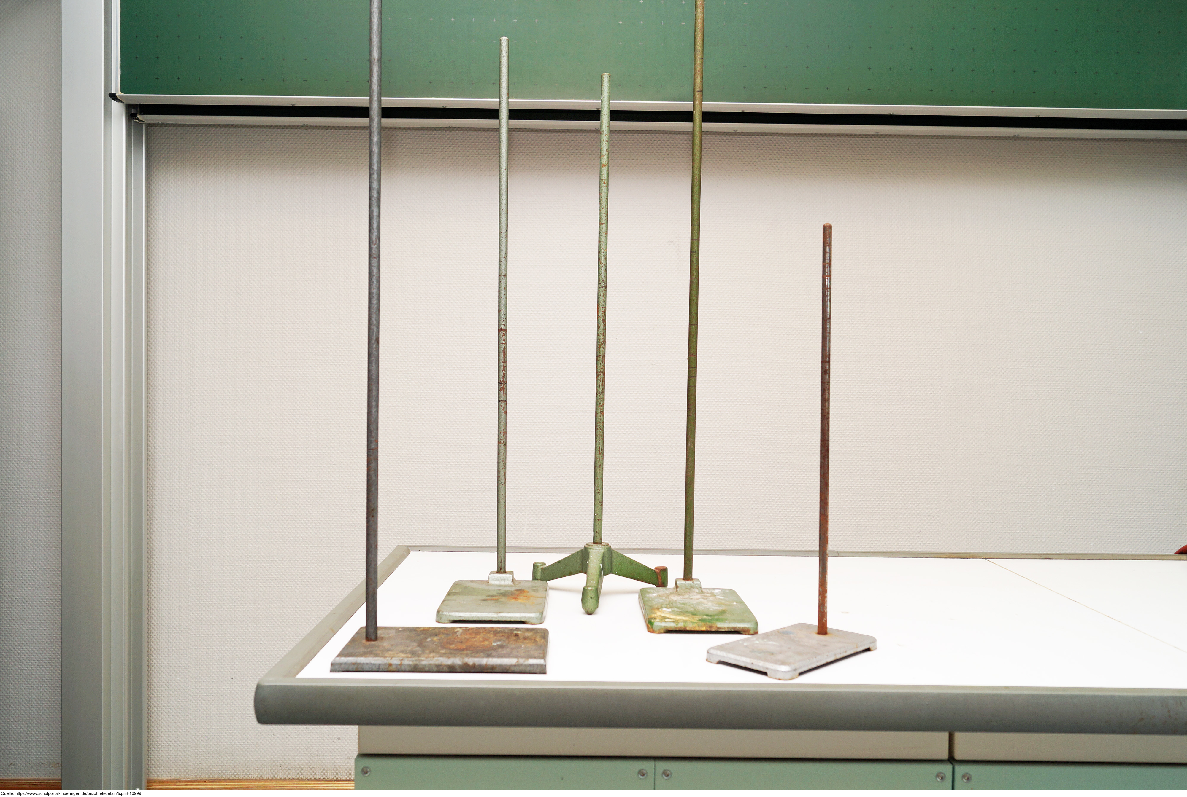 Das Foto gehört zur Serie "Experimente Chemie". Es zeigt verschiedene Arten von Stativen. Das Bild ist unter CC0 lizenziert und kann somit frei verwendet werden.