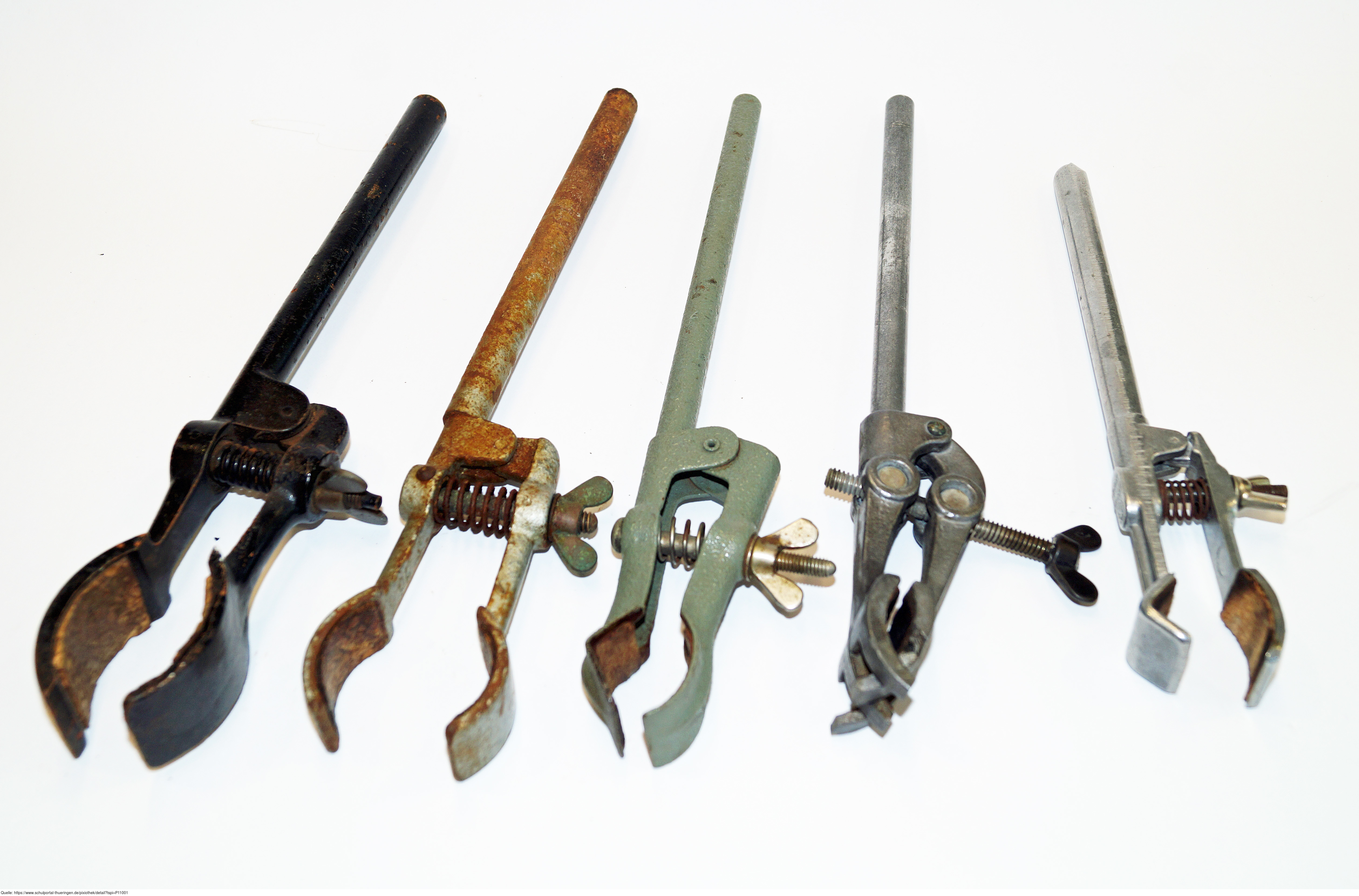 Das Foto gehört zur Serie "Experimente Chemie". Es zeigt verschiedene Arten und Größen von Stativklammern. Das Bild ist unter CC0 lizenziert und kann somit frei verwendet werden.