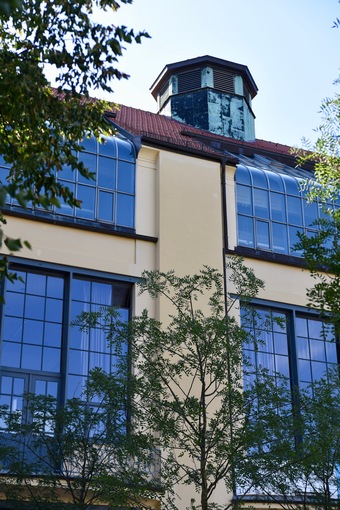 Das Foto gehört zur Serie "Bauhaus in Weimar". Im Zeitrahmen 1904 bis 1911 wurde nach Plänen Henry van de Veldes die Kunstgewerbeschule und später der Hochschulbau für Bildende Kunst in Weimar errichtet (heutiges Hauptgebäude der Bauhaus-Universität Weimar). Es ist eines der bedeutendsten Kunstschulbauten der Jahrhundertwende und war 1919 Gründungsort des von Walter Gropius ins Leben gerufene Staatlichen Bauhauses. Nach Art und Konzeption war es in dieser Zeit etwas völlig Neues, da das Bauhaus eine Zusammenführung von Kunst und Handwerk darstellte. Es gelten die Nutzungsbedingungen der Mediothek und Pixiothek.
