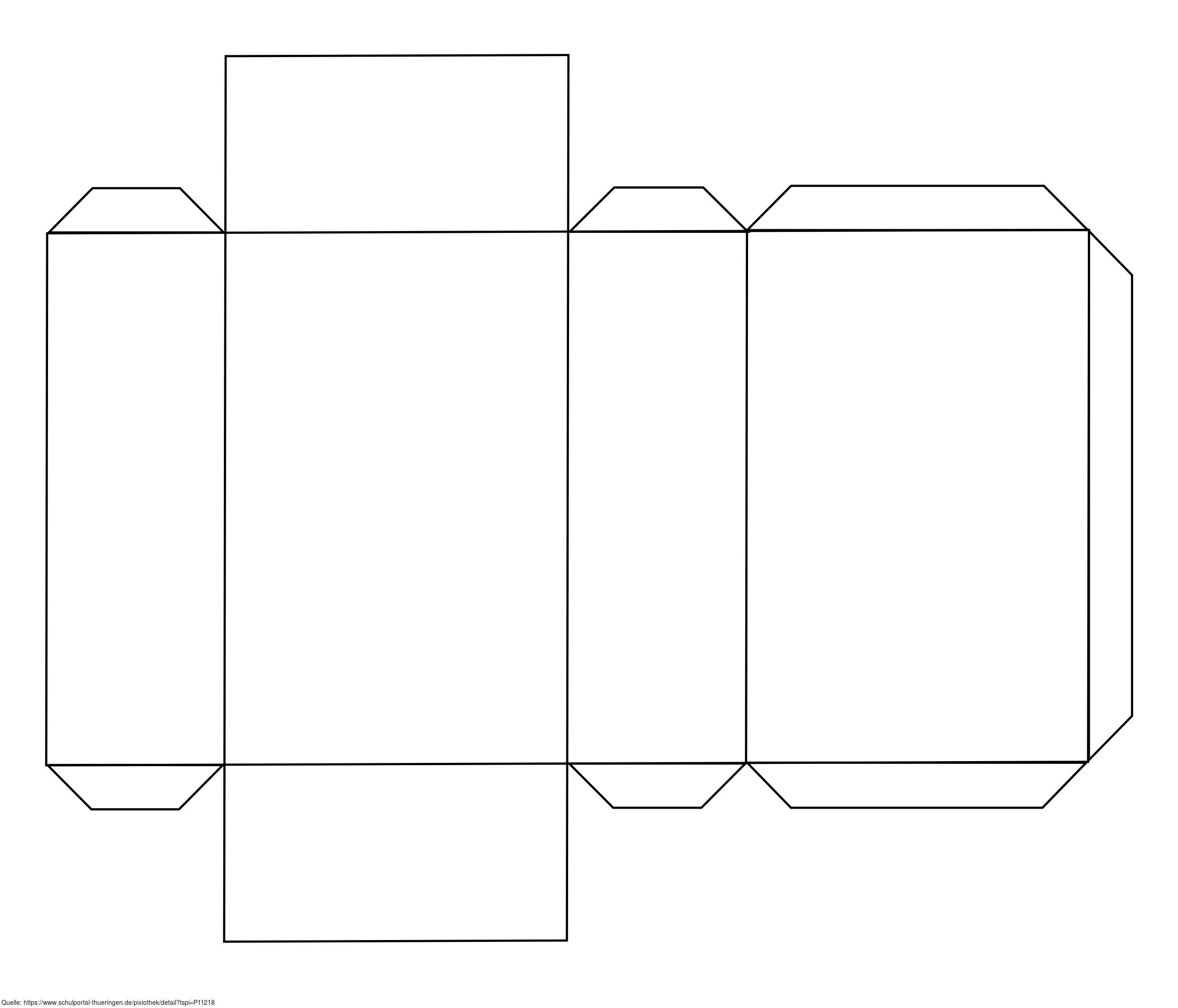 Das Bild gehört zur Serie "Geometrie Körper". Es zeigt das Netz vom Quader mit Klebelaschen. Das Bild ist unter CC0 lizenziert und kann somit frei verwendet werden.