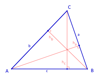 Das Bild gehört zur Serie "Mathematik Geometrie". Es zeigt die drei Höhen in einem spitzwinkligen Dreieck. Die Höhen schneiden sich in einem Punkt. Das Bild ist unter CC0 lizenziert und kann somit frei verwendet werden.