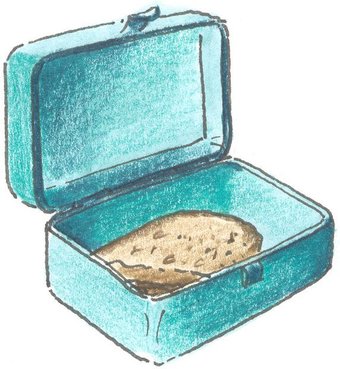 Das Bild gehört zur Serie "Nahrungsmittel". Es zeigt eine gezeichnete Brotdose mit Brot. Es gelten die Nutzungsbedingungen der Mediothek und Pixiothek.