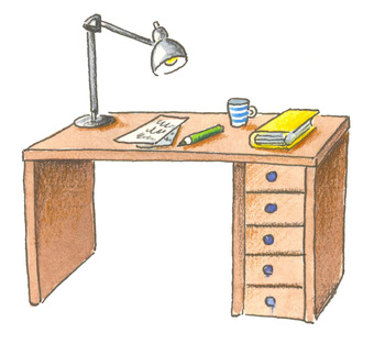 Das Bild zeigt einen gezeichneten Schreibtisch. Es gelten die Nutzungsbedingungen der Mediothek und Pixiothek.