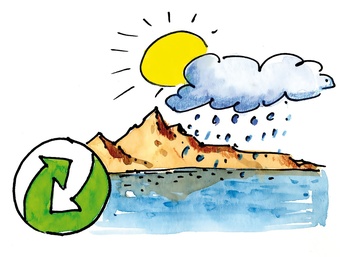 Das Bild gehört zur Serie "Schulfächer". Es zeigt ein gezeichnetes Symbolbild für den Bereich Wetter und Klima im Unterrichtsfach Geografie. Es gelten die Nutzungsbedingungen der Mediothek und Pixiothek.
