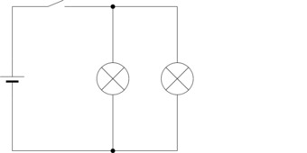 Das Bild gehört zur Serie "Elektrische Schaltungen". Es zeigt den Schaltplan einer Parallelschaltung mit Spannungsquelle (Batterie), Schalter und zwei Verbrauchern (Glühlampen). In dieser Version wurden die Verbindungsknoten eingezeichnet. Das Bild ist unter CC0 lizenziert und kann somit frei verwendet werden.