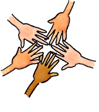 Das Bild gehört zur Serie "Unterricht". Es zeigt ein gezeichnetes Symbolbild für Gemeinschaft, Teamarbeit, Soziales. Es gelten die Nutzungsbedingungen der Mediothek und Pixiothek.