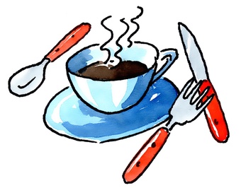 Das Bild gehört zur Serie "Hauswirtschaft". Es zeigt gezeichnetes Geschirr bestehend aus Besteck, Untertasse und Tasse. Es gelten die Nutzungsbedingungen der Mediothek und Pixiothek.