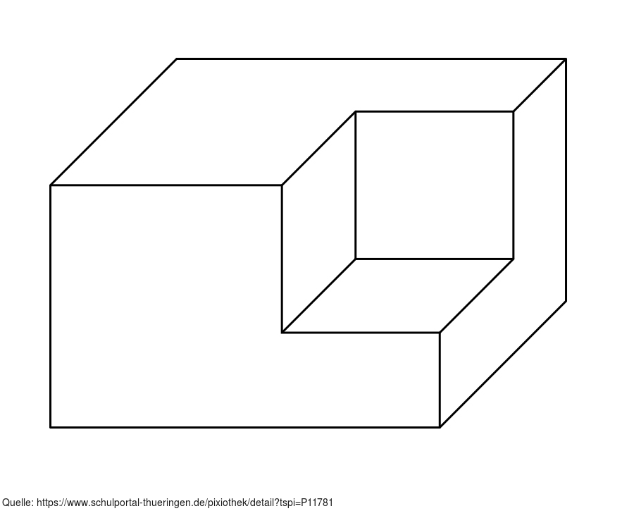 Das Bild gehört zur Serie "Geometrie Körper". Es zeigt einen Quader, bei dem an einer Ecke ein quaderförmiges Stück herausgetrennt wurde. Das Bild ist unter CC0 lizenziert und kann somit frei verwendet werden.