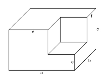 Das Bild gehört zur Serie "Geometrie Körper". Es zeigt einen Quader, bei dem an einer Ecke ein quaderförmiges Stück herausgetrennt wurde. Bei Vorgabe von Maßangaben für die bezeichneten Seiten kann das Volumen des Restkörpers berechnet werden. Das Bild ist unter CC0 lizenziert und kann somit frei verwendet werden.