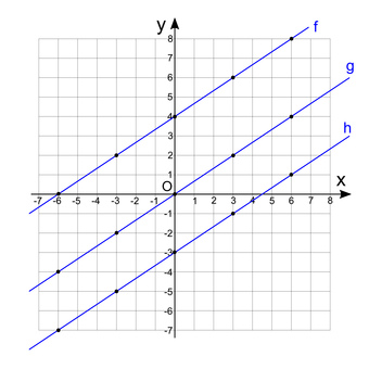 Lineare Funktionen mit gleichem Anstieg im Koordinatensystem