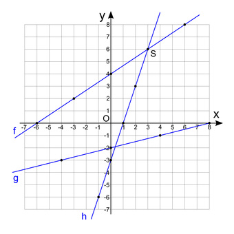 Das Bild gehört zur Serie "Mathematik, lineare Funktionen". Es zeigt im Koordinatensystem drei lineare Funktionen. Die Funktionsgleichungen sind zu ermitteln. Weiterhin können Koordinaten von Schnittpunkten und Nullstellen abgelesen werden. Das Bild steht in den Ausführungen normal, leichte Hilfen, und mehrfache Hilfen zur Verfügung. Das Bild ist unter CC0 lizenziert und kann somit frei verwendet werden.
