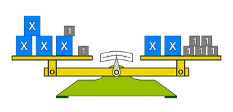Das Bild gehört zur Serie "Mathematik, Gleichungen". Es veranschaulicht die Lösung einer linearen Gleichung durch Äquivalenzumformung mit dem Bild einer Waage. Zur Gleichung 25 veranschaulichen die Bilder 25-1 bis 25-4 die Umformungsschritte. Das Bild ist unter CC0 lizenziert und kann somit frei verwendet werden.