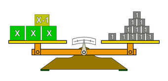 Das Bild gehört zur Serie "Mathematik, Gleichungen". Es veranschaulicht die Lösung einer linearen Gleichung durch Äquivalenzumformung mit dem Bild einer Waage. Zur Gleichung 26 (5x - 1 = x + 11) veranschaulichen die Bilder 26-1 bis 26-5 die Umformungsschritte. Das Bild ist unter CC0 lizenziert und kann somit frei verwendet werden.