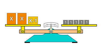 Das Bild gehört zur Serie "Mathematik, Gleichungen". Es veranschaulicht die Lösung einer linearen Gleichung durch Äquivalenzumformung mit dem Bild einer Waage. Zur Gleichung 13 (3x - 1 = 5) veranschaulichen die Bilder 13-1 bis 13-4 die Umformungsschritte. Das Bild ist unter CC0 lizenziert und kann somit frei verwendet werden.