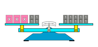 Das Bild gehört zur Serie "Mathematik, Gleichungen". Es veranschaulicht die Lösung einer linearen Gleichung durch Äquivalenzumformung mit dem Bild einer Waage. Zur Gleichung 11 veranschaulichen die Bilder 11-1 bis 11-3 die Umformungsschritte. Das Bild ist unter CC0 lizenziert und kann somit frei verwendet werden.