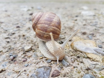 Das Foto zeigt eine Weinbergschnecke (Helix pomatia). Es gelten die Nutzungsbedingungen der Mediothek und Pixiothek.