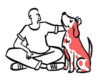 Die Zeichnung "doggy" aus der Serie "Open Doodles" zeigt einen Mann, der einen Hund über den Kopf streicht. Das Bild ist unter CC0 lizenziert und kann somit frei verwendet werden.