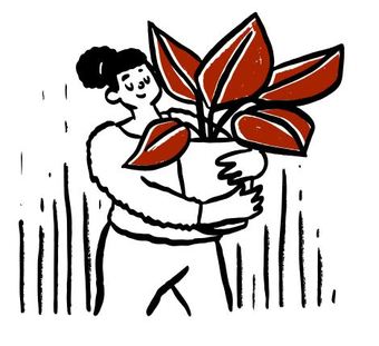 Die Zeichnung "plant" aus der Serie "Open Doodles" zeigt eine Frau, die einen Blumentopf mit Pflanze trägt. Das Bild ist unter CC0 lizenziert und kann somit frei verwendet werden.