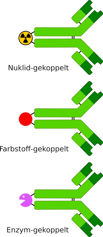 verschiedene (chemische) Modifikationen an Immunglobulinen zum Einsatz in der Molekularbiologie. Es gelten die Nutzungsbedingungen der Mediothek und Pixiothek. Auf http://unterricht.petzinger.net/biochdropbox.html auch als svg und in CC-BY verfügbar.