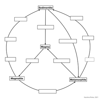 Das Bild verdeutlicht den Gesteinskreislauf. Bild-Variante: unbeschriftet; ohne Symbole. Es gelten die Nutzungsbedingungen der Mediothek und Pixiothek.