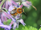 Gehörnte Mauerbiene auf einer Apfelblüte
