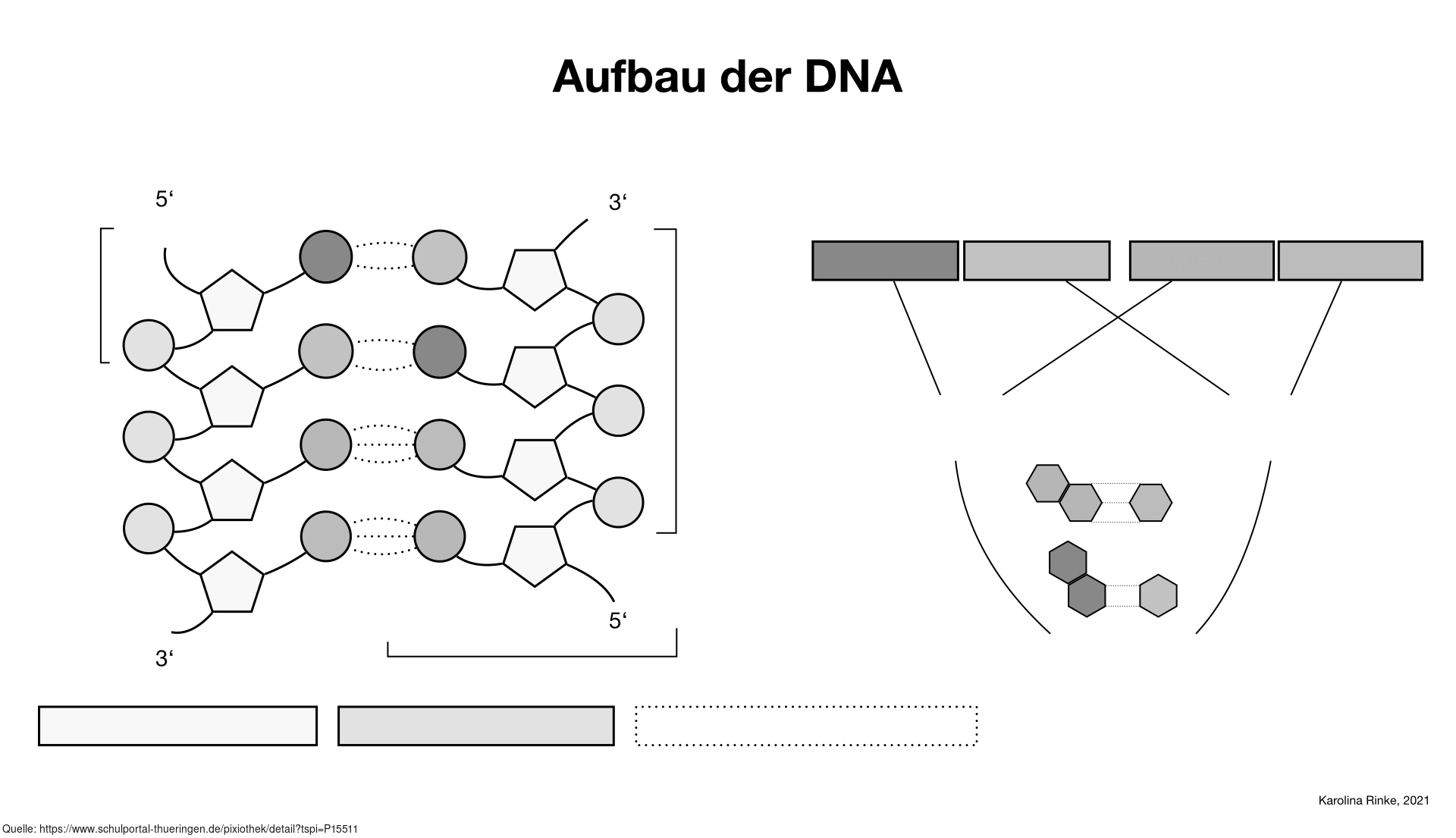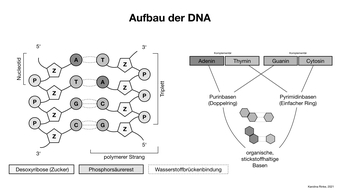 Das Bild verdeutlicht den Aufbau der DNA. Bild-Variante: s/w; beschriftet. Es gelten die Nutzungsbedingungen der Mediothek und Pixiothek.