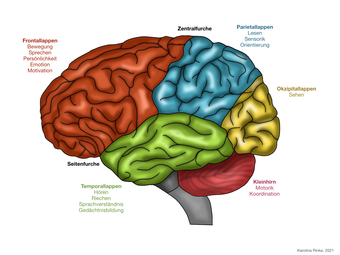 Das Bild gehört zur Serie "Organe des Menschen". Das Bild verdeutlicht den Aufbau der menschlichen Großhirnrinde. Bild-Variante: farbig; beschriftet. Es gelten die Nutzungsbedingungen der Mediothek und Pixiothek.