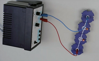 Das Bild gehört zur Serie "Elektrische Schaltungen". Es zeigt den Aufbau einer Reihenschaltung mit Spannungsquelle, Schalter und zwei Verbrauchern (Glühlampe). Der teilweise bearbeitete Screenshot stammt aus einem Video von Ecole Science, welches ebenfalls hier in der Pixiothek abrufbar ist (siehe Auswahl verwandter Medien). Das Bild ist unter CC0 lizenziert und kann somit frei verwendet werden.