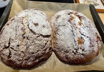 Weihnachtsstollen, gebackene Teiglinge gezuckert