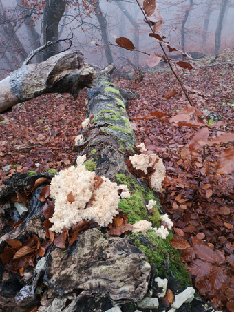 Lebenslauf einer Buche 09: liegendes Totholz mit Baumpilzen