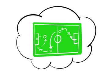 Das Bild zeigt eine Gedankenblase mit einem Fußballfeld als mögliche Symboldarstellung für Strategie und Taktik oder eine Strategieplanung. Es wurde erstellt von Peter Bernardi für SeLL, HHU Düsseldorf. Es gelten die Nutzungsbedingungen der Mediothek und Pixiothek.