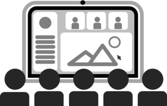 Das Bild zeigt eine symbolische Darstellung der Anzeigefläche bei einer hybriden Veranstaltung. Die Grafik gehört zur Serie „Mobiles Setup für hybride Veranstaltungen“. Es gelten die Nutzungsbedingungen der Mediothek und Pixiothek.