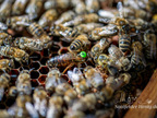 Bienenkönigin umringt von Arbeiterinnen