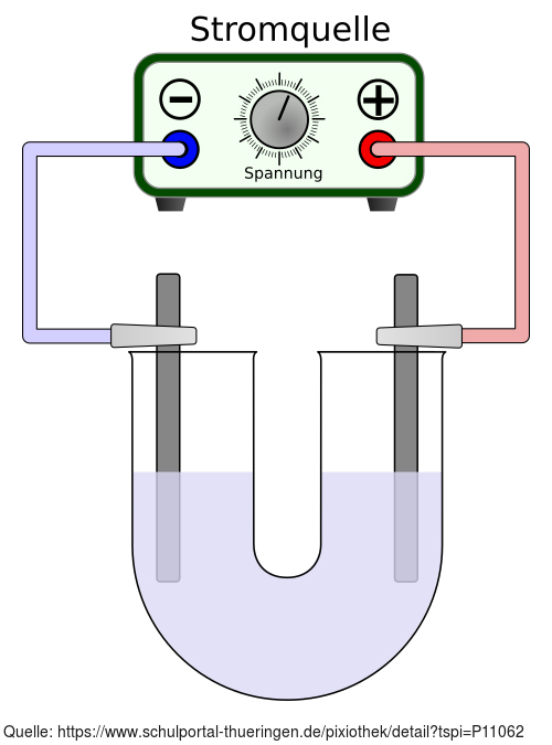 Das Bild gehört zur Serie "Elektrochemie". Es verdeutlicht den Aufbau einer Elektrolyse am Beispiel einer Kupfer(II)-chlorid-Lösung. Bild-Variante: s/w, beschriftet, ohne Erläuterung. Es gelten die Nutzungsbedingungen der Mediothek und Pixiothek.