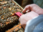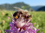 Das Bild gehört zur Serie "Saalfelder Honig", aufgenommen vom Imker Bernd Rümpler, Inhaber von saalfelder-honig.de. Zu sehen ist eine Honigbiene (Flugbiene) auf der Blüte einer Kornblume. Sie klebt Pollen an ihre Hinterbeine, indem sie diesen mit körpereigenen Stoffen vermischt (Pollenhöschen). In ihrem Fell haften sich Pollenkörnchen an, durch welche dann auf der nächsten Blüte deren Befruchtung erfolgt. Mit dem Rüssel nimmt sie am Blütengrund Nektar auf und transportiert diesem im Honigmagen zum Bienenstock.