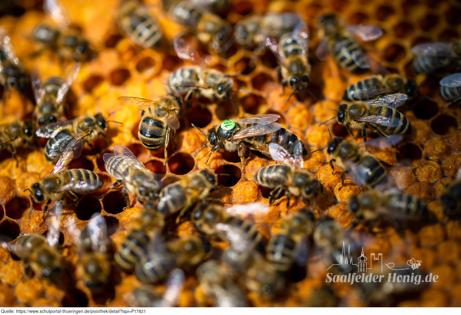 Das Bild gehört zur Serie "Saalfelder Honig", aufgenommen vom Imker Bernd Rümpler, Inhaber von saalfelder-honig.de. Zu sehen ist ein Imker am geöffneten Bienenvolk mit gezogener Wabe. Es gelten die Nutzungsbedingungen der Mediothek und Pixiothek.
