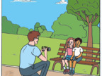 Vater möchte Kinder fotografieren