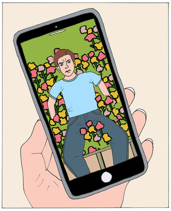 Das Bild zeigt ein Handyfoto, auf welchem ein Vater in einem Blumenbeet liegend zu sehen ist. Das Bild kann als Teil einer Bildergeschichte verwendet werden - siehe Funktionslink "Weitere Bilder der Serie". Es gelten die Nutzungsbedingungen der Mediothek und Pixiothek.