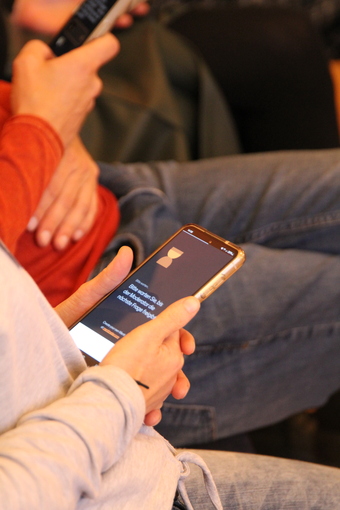 Teilnehmer mit mobilen Endgeräten bei einer Umfrage