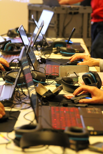 Das Bild ist Teil der Serie „Veranstaltungen“. Es zeigt Teilnehmer eines Workshops bei der Arbeit an ihren Rechnern bzw. mobilen Endgeräten. Es gelten die Nutzungsbedingungen der Mediothek und Pixiothek.