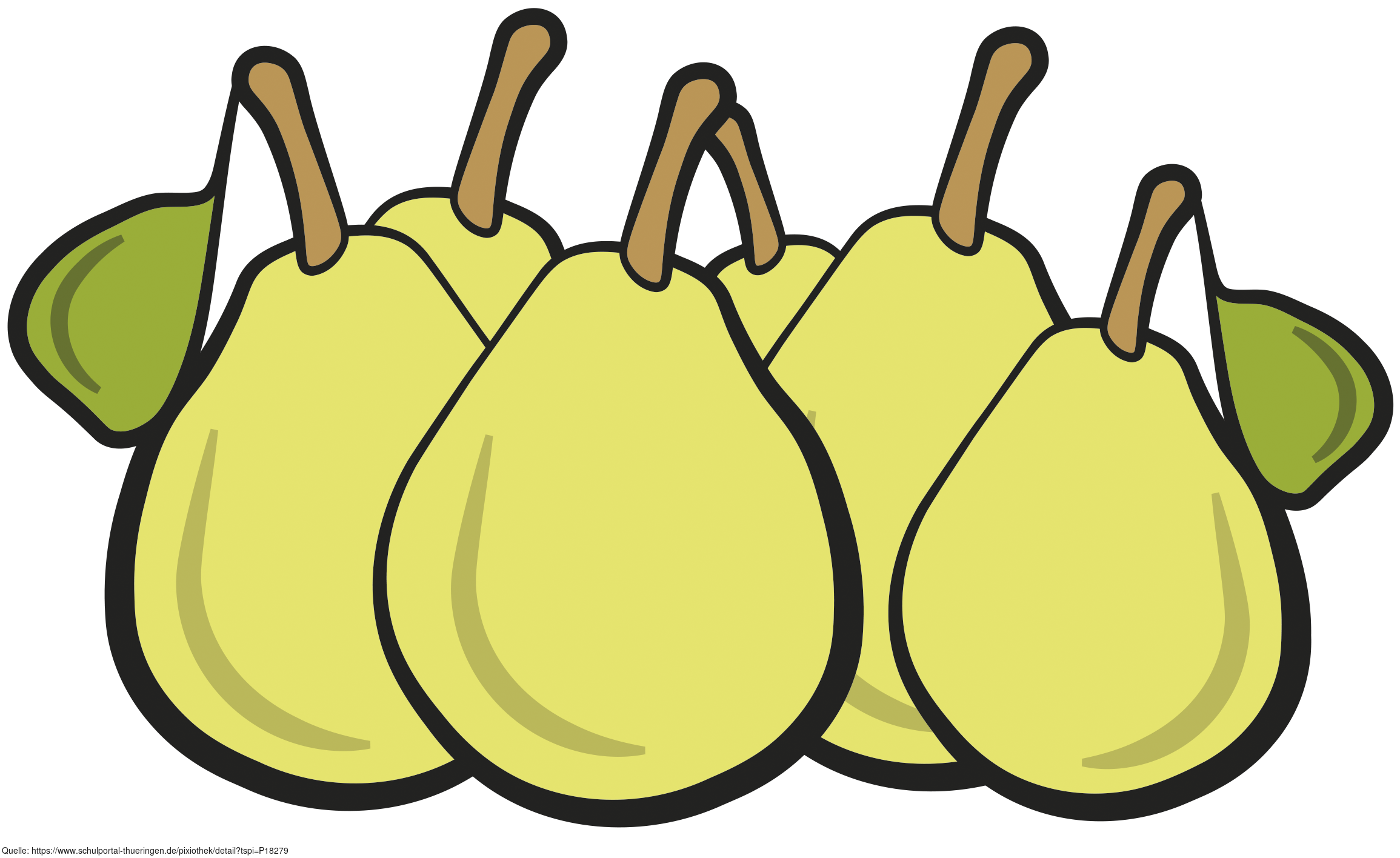 Das Bild zeigt gezeichnete Birnen. Es stammt aus dem Projekt "Didactica Bavaria Bohemia" - Materialpakete daraus siehe "Verwandte Medien (Auswahl)". Das Bild ist unter CC0 lizenziert und kann somit frei verwendet werden.